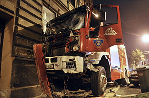 Dok su na vatrogasnom vozilu bili upaljeni svjetlosni i zvučni znakovi u raskrižje s Palmotićevom ulicom ušao je na znak crvenog svijetla na semafora pa je naletio na prednji bočni dio teretnog automobila marke Mercedes zagrebačkih registracijskih oznaka, vlasništvo Čistoće.