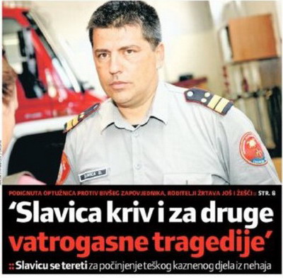 Šibensko Županijsko državno odvjetništvo podiglo je optužnicu protiv bivšeg šibensko-kninskog vatrogasnog zapovjednika Dražena Slavice (41) tereteći ga za počinjenje teškog kaznenog djela protiv opće sigurnosti ljudi i imovine počinjeno iz nehaja(iz čl. 271 st. 2. u vezi s čl. 263 st. 2. Kaznenog zakona, a kažnjivo po čl. 271 st. 2. istog Zakona).