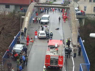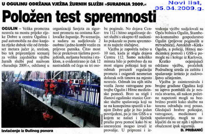 Vježba se održala u Ogulinu 04.04.2009. na mostu rijeke Dobre i križanja ulica V. Nazora i Kardinala A. Stepinca s desne strane mosta, gledajući u pravcu sjevera.