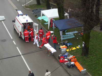 Ukupno ima 12 ozljeđenih osoba. Od toga u primarnoj trijaži su : 3 teže ozlijeđena, 2 lakše ozlijeđena, 3 mrtva, 3 neozlijeđena i 1 nedostupan žurnim službama s nepoznatim ozljedama – potrebna pomoć HGSS-a.