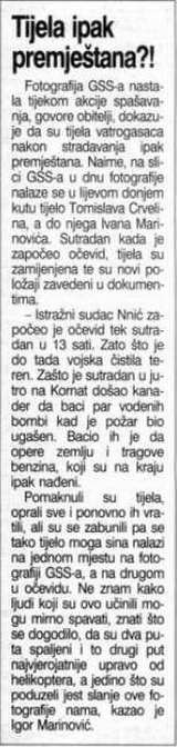 - Pogledajte sliku iz helikoptera i od GSS-a. Na jednoj opečeni po nogama, sjede zajedno, na drugoj se vidi da su bježali, spašavali se, cijeli izgoreni. Crvelin je na prvoj slici u biloj majici. Imao je, utvrđeno je na patologiji 90 posto opekotina, a na prvoj slici je u biloj majici. Ne može nitko na kome je ostala bila majica imati 90 posto opekotina, jer to znači cijelo tijelo. Pogledajte ih. To je dokaz.