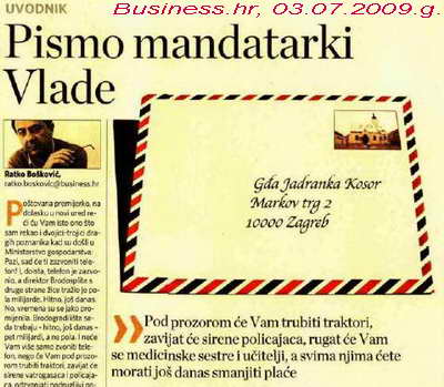 Ovom pismu nedostaje još i P.S.:"A vi poštovana premijerko najprije smanjite plaće za 500 kn,penzije za 250 kn,i nemojte slučajno objavljivati listu branitelja jer bi tada mogli ovoj zemlji ušparati koju milijardu,a budete li eventualno donosili novi zakon nama vatrogascima tada se pobrinite da financiranje prebacite na lokalnu samoupravu jer i tu će te ušparati kojih dvjestotinjak milijuna.A ako vam slučajno zaprijete požari vi se slobodno vratite u paštetu jer one su u frižideru i dok gori ne izlazite van.