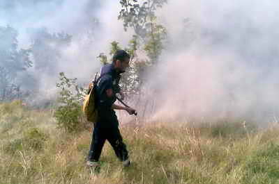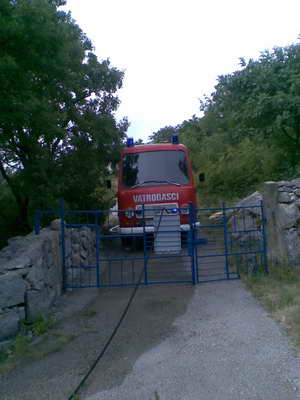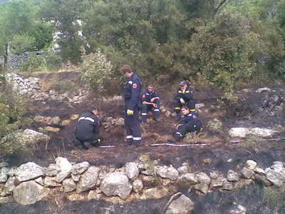 Pošto su visoke naslage trave potrebno je natapanje rubnih djelova požara kao i samog središta jer južni vjetar razbuktava žar!
