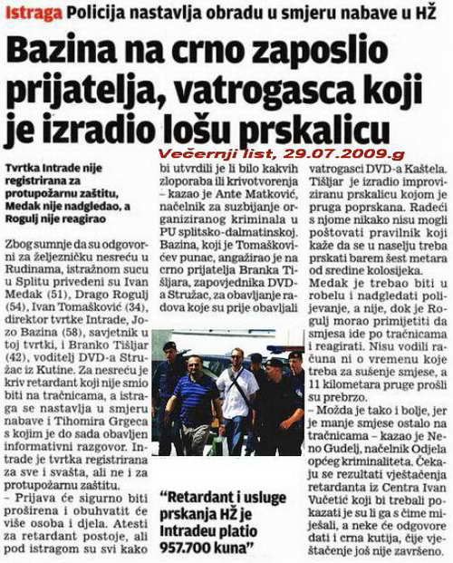 Osim Medaka, saslušana su još i ostala četvorica osumnjičenika Drago Rogulj (54), voditelj zaštite od požara u splitskoj Sekciji HŽ-a, Ivan Tomašković (34), direktor Intradea, njegov savjetnik Jozo Bazina (58), i Branko Tišljar (42), voditelj vatrogasaca DVD-a Stružac iz Kutine, koji su umjesto uobičajenog DVD-a Kaštela, "na crno"; asistirali posipanju tekućine po pruzi.