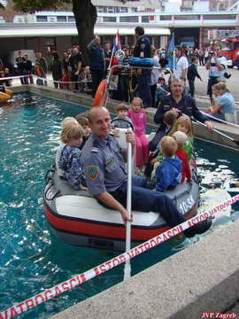 Moglo se voziti u čamcima po bazenu, uči u košaru vatrogasne autoljestve ili zglobne platforme, primiti vatrogasnu cijev i otvarati i zatvarati mlaz, moglo se....pojesti malo vrućih kestena koje je ekipa iz radione vrijedno pekla...a onda su na red dolazile vježbe. Prva je vježba održana u 11,00 sati te je druga održana u 13,00 sati.
