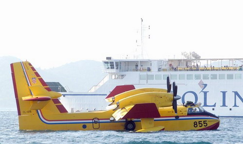 "Canadair" je neko vrijeme kružio iznad stare zadarske jezgre, a nakon slijetanja, po pilota je poslan brod. Zbog kvara pilot je morao sletjeti u more, za što je dobio dozvolu policije.