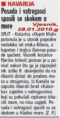 Zanimljivo je da se vlasniku Dupina Malog, prije godinu dana, točnije 20.siječnja 2009.na moru između Komiže i otoka Biševa, dogodila havarija ribarske koćarice Marinero. I tada su svi članovi posade nakon kratke potrage policije i mještana spašeni.