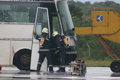 Opsežna i zahtjevna akcija gašenja i spašavanja trideset putnika i pet članova posade iz pri prisilnom slijetanju teško oštećenog