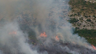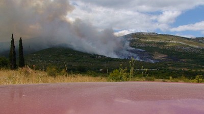 U požaru gori nisko raslinje i šuma, a vatra se širi potpomognuta vjetrom. Kolika je površina požarima zahvaćenog područja znat će se naknadno.