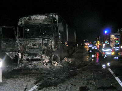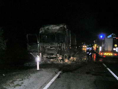Pri dolasku na mjesto intervencije voditelj intervencije utvrđuje da je požar u razbuktaloj fazi i da gori cijela kabina kamiona i dio teretnog prostora sa robom u plastičnoj ambalaži. Brzom intervencijom vatrogasci uspijevaju pogasiti požar teretnog prostora, a zatim i dogasiti ostatak kabine kamiona tako da je požar zaustavljen u granicama u kojima je bio do dolaska vatrogasaca. Ubrzo nakon lokaliziranja požara cesta je otvorena za promet, jer je za vrijeme požara bilo nemoguće odvijanje prometa.