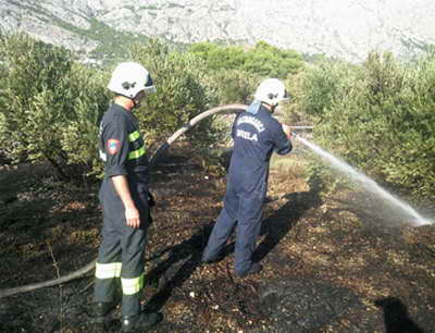 Po dojavi na teren izlaze vatrogasci Baške Vode te im se uskoro pridružuju kolege iz Brela i Makarske.