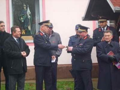 Nakon pozdravnih riječi župnik župe Sv. Emerika u Oriovcu, velečasni gospodin Zvonimir Marjanović je blagoslovio novo vatrogasno vozilo, uz želju da ga se što manje koristi, ali ako treba biti će dobro uporabljeno.