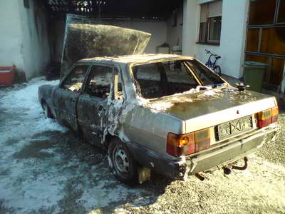 Jutros u 00.32 dobili smo dojavu da je u Jakšiću, Osječka 63 došlo do požara na osobnom vozilu i garaži. Na mjesto intervencije dolazi 10 vatrogasaca i navalno vozilo u vrlo brzom roku i zatiče vozilo u plamenu u garaži koja je također zahvačena plamenom. U vrijeme nastanka požara u garaži se nalazilo još jedno vozilo koje je vlasnik na vrijeme uklonio i na kojem je nastala manja šteta zbog otapanja plastike retrovizora, žmigavaca i ukrasnih lajsni. Pristupamo gašenju vozila pjenilom i drugim mlazom gašenju garaže i krovišta garaže. Nakon skoro sat vremena intervencija je sigurno privedena kraju uz veću, ali ne totalnu štetu na garaži i sa totalnom štetom na vozilu. Prilikom gašenja došlo je do nekoliko manjih eksplozija guma vozila i manjom eksplozijom rezervoara goriva, točnije eksplozija je izbila iz rezervoara plovak za mjerenje količine goriva. Sreča u nesreči je što je pogonsko gorivo vozila dizel, a ne benzin.
