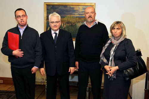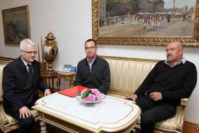 Predsjednik Ivo Josipović primio je u 12.30 sati u svom uredu jedinog preživjelog vatrogasca kornatske tragedije, Franu Lučića i njegove roditelje.