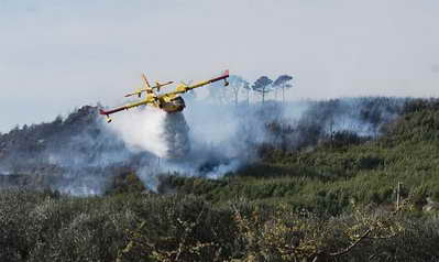 Gašenju požara pomaže kanader pa je širenje požara iza 16 sati zaustavljeno te se očekuje da će požar brzo biti lokaliziran. Kuće nisu ni u jednom trenutku bile ugrožene.