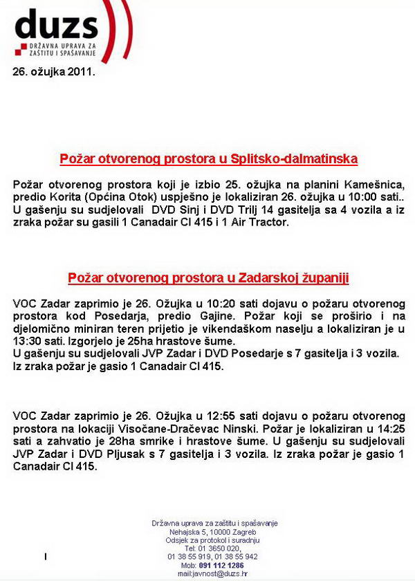 DUZS: 26. ožujak 2011 požari otvorenog prostora