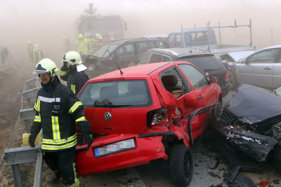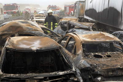 U stravičnoj prometnoj nesreći na njemačkoj autocesti kraj Rostocka sudarila su se ukupno 43 vozila u petak popodne. Poginulo je deset, a ozlijeđeno je 97 ljudi. S jedne strane autoceste sa četiri trake sudarilo se i zapalilo 17 automobila i tri kamiona, uključujući i cisterna koja je prevozila opasnu tekućinu. Dio se i izlio.