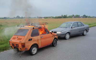 Pristigle postrojbe vrše gašenje i spašavanje unesrećenog iz vozila te relejnu dobavu vode iz udaljenog hidranta do vatrogasnih vozila.