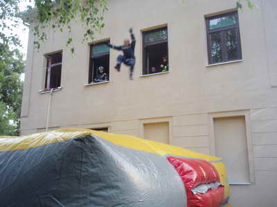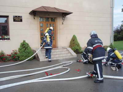 Dolaskom na mjesto intervencije zapovjednik VZO uočava opseg spašavanja te preko zapovjednika VZZŽ,a koordinacijom centra 112 Zagreb traži pomoć najbliže javne postrojbe,a to je JVP Karlovac koja po dolasku vrši spašavanje učenika skakanjem iz zgrade na zračni jastuk, a s tim vježba i završava.