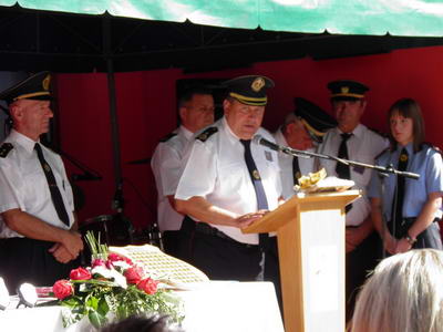 Obljetnici su prisustvovali predsjednik VZMZ Orsag Zlatko, tajnik VZMZ Dragutin Trupković, predsjednik veterana VZMZ Ivan Novak, Načelnik općine Nedelišće, predsjednik Mjesnog odbora Slakovec, druga dobrovoljna vatrogasna društva iz općine i županije (Brezje, Čakovec, Crecan, Dunjkovec,G.Hrašćan, G.Kursanec, G.Mihaljevec, Knezovec,Lopatinec, Macinec, M.Mihaljevec, Mihovljan, Nedelišće, Podturen, Pretetinec, Pušćine, Savska Ves, Strahoninec Šenkovec, Trnovec, Vučetinec, Zasadbreg, JVP grada Čakovca) prijateljska društva izvan Međimurske županije (DVD Kunovec, DVD Sašinovec), mnoštvo mještana Slakovca i susjednih sela te mnogi drugi ugledni gosti. Svi su oni htjeli biti dio povijesti vatrogasaca Slakovca koji su ponos sela, općine, županije ali i hrvatskog vatrogastva.
