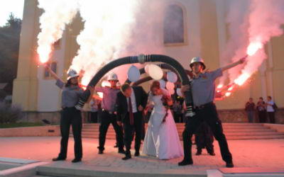 Prve subote u mjesecu srpnju, dugogodišnji član DVD-a Krapina i djelatnik JVP Krapina Mario Gerić odlučno je stao pred oltar sa svojom odabranicom Anitom Živičnjak. Vjenčanje je, kao i svako drugo, teklo svojim uobičajenim tijekom, sve dok mladenci nisu prekoračili crkveni prag.