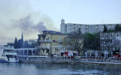 Vatrogasci DVD-a Njivice i JVP Krk se bore sa požarom hotela Jadran u Omišlju. Dojava dolazi u 6:00 sati ujutro.
