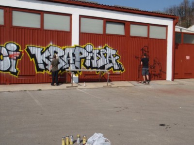 Zahvaljujući ideji Marina Bratinčevića - našeg „Spliće" koji je iznio ideju da bi se prostor mogao urediti grafitom, voditelj I. smjene g. Marjan Čuček odmah je povukao veze preko dviju gospodični iz Zagreba