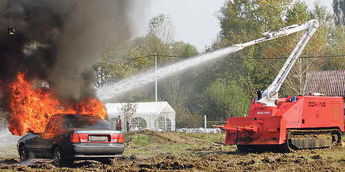 Na Vatrogasnom poligonu u Ivanić Gradu neobično vozilo u utorak je razbijalo zidove, gasilo požare i odnosilo automobile. Crveni zmaj, službenog naziva MVF-5, tvrtke Dok-Ing, pokazao je impresivne kvalitete...Svladava uspone od 30 stupnjeva, može se okretati oko svoje osi, ima hidrauličku hvataljku i opremljeno je sa šest kamera, od kojih jedna automatski traži žariše vatre. Stroj ima dva spremnika - u onaj za vodu stane 2500 litara, a u onaj za pjenu 700 litara.