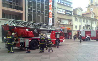 Riječki Korzo nešto poslije 12 sati i 30 minuta okupirali su vatrogasci. Pozvani su zbog dima koji je počeo izvirati iz cijevi za odvod kišnice na krovu zgrade Grada Rijeke.