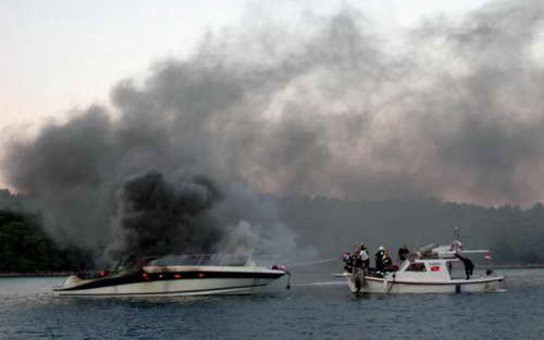 Austrijska jahta 'Bora 4', marke Searay, sa dva motora Camins po 450 KS, dugačka 14 metara u potpunosti je izgorjela u četvrtak navečer na sidrištu kupališta Soline.