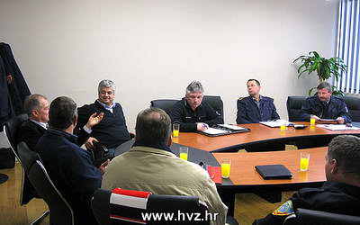 Još jednom u MUP-u: Izaslanstvo HVZ, zapovjednici JVP te predstavnik sindikata javnih profesionalnih vatrogasnih postrojbi Hrvatske (Rijeka, Split, Istra i Kvarner, Pula, Slavonski Brod, Zagreb) i to: Ante Sanader (HVZ), Dino Kozlevac (HVZ), Mladen Malčić (JVP Zagre, Felicijo Parčina (JVP Split), Boris Banjan (JVP Osijek), Željko Šoša (JVP Zadar), Hinko Mance (JVP Rijeka), Ivo Stakić (Predstavnik Sindikata vatrogasaca)... Doneseni zaključci i hitno privremeno rješenje problema!
