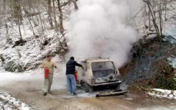 Rendžerima Parka prirode 'Papuk' iznenada je planuo terenac Lada Niva na cesti od Slatinskog Drenovca prema Velikoj, tek 300 metara od planinarskog doma.