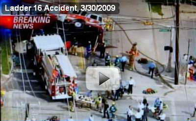Dva vatrogasna vozila iz Houstonskih vatrogasnih postaja 7 i 16 imali su nesreću u mjestu Dunlavy blizu Westheimera... Kako piše Houston kronika dva vatrogasna vozila koja su jurila na intervenciju sudarila su se međusobno navalno iz 7. i ljestva iz 16. Od siline udara Ljestva se prevrnula na jedan automobil, zahvativši i ženu na biciklu. Ozlijeđeno je 11 osoba, od čega jedna je kritično. Prilikom sudara jedan je vatrogasac izletio iz vozila.