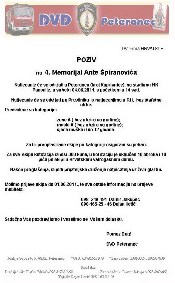 Natjecanje će se održati u Peterancu (kraj Koprivnice), na stadionu NK Panonije,