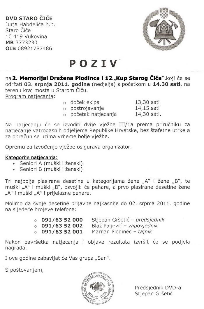 03.srpnja 2011. godine (nedjelja) od 14.30 sati,