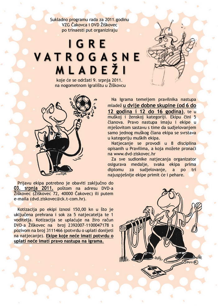 Kotizacija se uplaćuje na žiro račun DVD-a Žiškovec na broj 2392007-1100047178 s pozivom na broj 3111466 (potvrdu o uplati donijeti na natjecanje).