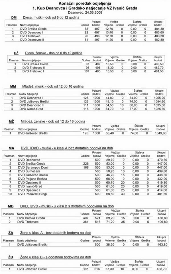 U subotu 24.05.2008. godine održan 1 kup DVD-a Deanovec.