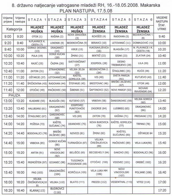 VIII. državno natjecanje vatrogasne mladeži Republike Hrvatske održat će se u Makarskoj od 16. do 18. svibnja 2008. godine pod visokim pokroviteljstvom predsjednika Republike Hrvatske gospodina Stjepana Mesića.
