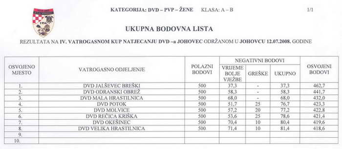 NA IV. VATROGASNOM KUP NATJECANJU DVD –a JOHOVEC