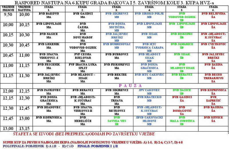 pozdrav svima koji dolaze u Đakovo od domaćina. Uvažite nekoliko izmjena u rasporedu. DVD Peščenik se odjavio te na mjesto nastupa ubačen je dvd Rajić . DVD Veliki otok ŽA nastupaju u 13,15 na 6 stazi. molimo da uvžite ove male izmjene.
