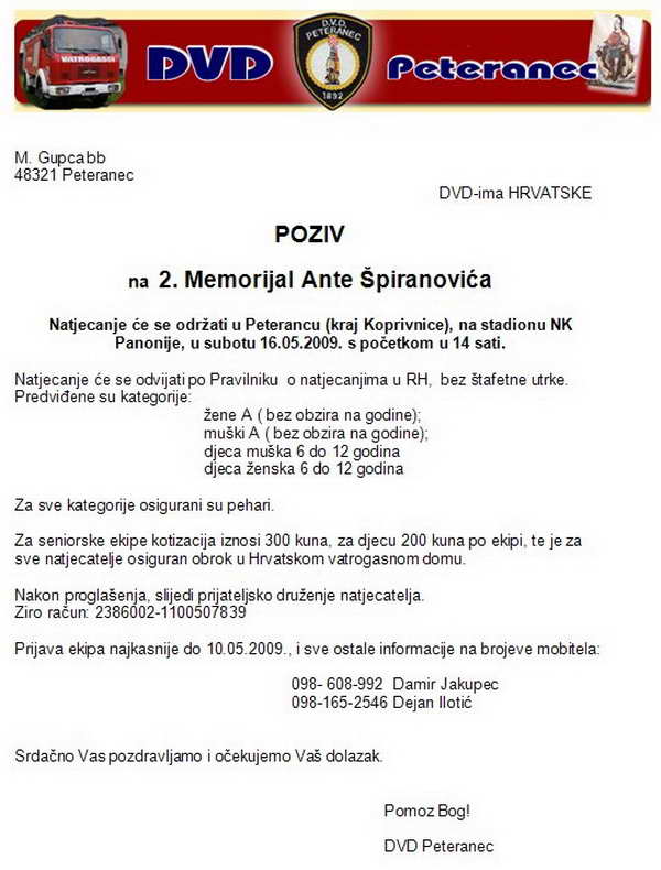 2. memorijalno natjecanje DVD PETERANEC