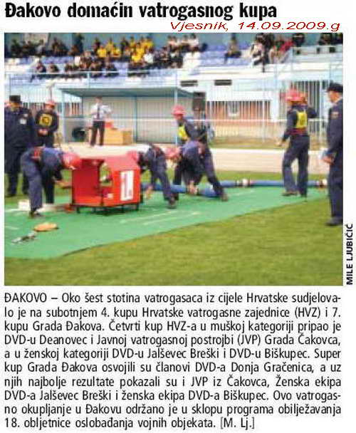 Vatrogasni kup održati će se 12. 09. 2009. godine ( subota ) u Đakovu na stadionu Croatia.