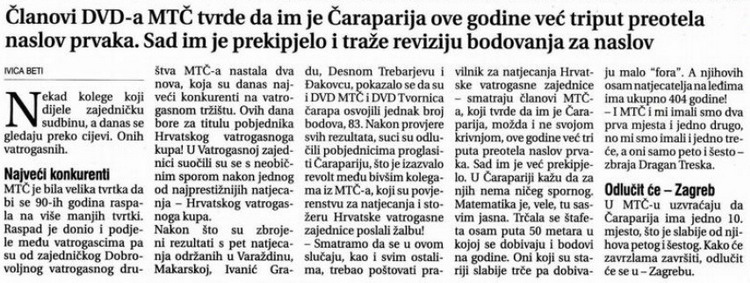 |  Članovi DVD-a MTČ tvrde da im je Čaraparija ove godine već triput nepravedno preotela naslov prvaka. Sad im je prekipjelo i traže raviziju bodovanja za KUP HVZ-a. Nekad kolege koji dijele zajedničku sudbinu, a danas se gledaju preko cijevi. Onih vatrogasnih.