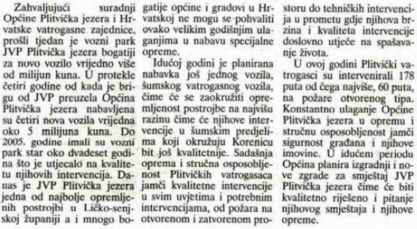 U protekle četiri godine od kada je brigu od JVP preuzela Općina Plitvička jezera nabavljena su četiri nova vozila vrijedna oko 5 milijuna kuna.