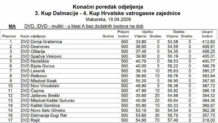 nema puno iznenadjenja sto se tice rezultata, sezona je dobro pocela i to je i ok...malo me cudi broj ekipa, a mozda se to i meni cini da ih je malo... a i travanj je tek...kad se tak pogleda, onda je sve ovo jos i super/odlicno s obzirom da se vani jos vrte indoor natjecanja...