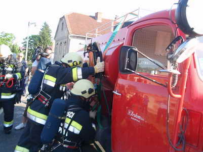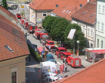 Nakon uspješno odrađenog Dana otvorenih vrata održana je i 7. po redu međunarodna vatrogasna vježba u organizaciji DVD-a Krapina. Ovogodišnje vatrogasne vježbe osmislili su zamjenik zapovjednika DVD-a Krapina g. Miljenko Buzina i zapovjednik JVP Krapina g. Marijan Lovrenčić. Na prvoj vježbi koja je održana u 17.30 sati na mostu preko Krapinčice kod sv. Ivana sudjelovali su JVP Krapina i DVD Đurmanec. Pretpostavka: došlo je do sudara osobnog automobila i autocisterne te je došlo do zapaljenja osobnog automobila i napuknuća spremnika autocisterne te curenja tekućine. Vozač osobnog automobila nije teže ozlijeđen te je sam izašao iz vozila. Ubrzo nakon zvuka sirene za uzbunu dolaze djelatnici JVP Krapina te novim sredstvom za gašenje požara na našem tržištu - HIDREX ugušuju požar automobila. Druga grupa sa izolacijskim aparatima pristupa sanaciji puknuća na autocisterni sa zračnim jastukom. Pošto je jedan dio tekućine iscurio u obližnju rijeku treća grupa postavlja plivajuću branu preko korita rijeke kako bi spriječila njeno daljnje širenje rijekom. Zaustavljanjem tekućine koja je dospjela u rijeku dolazi do pojave masne mrlje na površini rijeke koju grupa posipava apsorbentom za prikupljanje masnoća, te nakon što je apsorbent upio masnoće s površine kupi apsorbent.