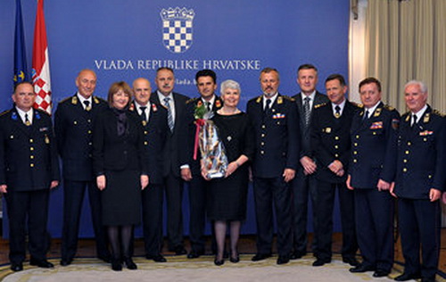 Predsjednik Hrvatske vatrogasne zajednice Ante Sanader premijerki je poklonio statuu sv. Florijana, zahvalivši i njoj i vladi što i u vrijeme krize pokazuju senzibilitet prema vatrogastvu, ne štedeći, nego i dalje financijski i opremom snažeći vatrogasne postrojbe.