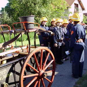Ekipa se sastoji od 9 članova koji sa starom ručnom špricom obavljaju određene zadatke. Stariji članovi prisjetili su se svoje mladeži, a onaj najstariji Šegović Ivan 89 godina iz Male Subotice nam je na slikovit način predočio prošlost. Njegove riječi bi mogli svesti u jednu rečenicu: ''Ovo je moj dan, tako smo mi nekad gasili požare i drago mi je da svojim unukama mogu pokazati kako je to nekad izgledalo…''