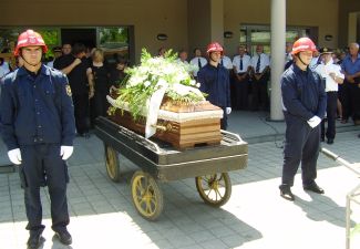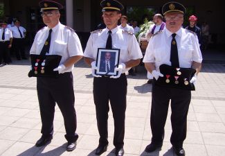 Pola sata prije pogreba, počasnu stražu pokojniku odali su članovi matičnog društva DVD-a Sisak, VZG Siska i dužnosnici VZ Sisačko-moslavačke županije.