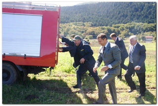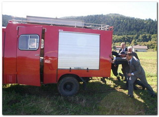 Iako su bili u finim odijelima i obući prikladnoj za neke druge prilike, potpredsjednik Sabora, župan i načelnik složno i bez odgađanja su pomogli vatrogascima izgurati Tam.